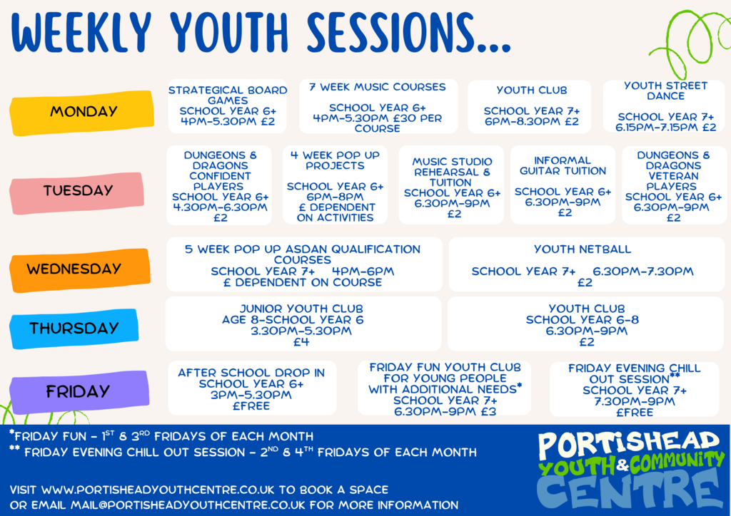 Portishead Youth Centre Ltd is a not-for-profit company and all funds generated ensure the building meets the needs of the young people and wider community of Portishead.